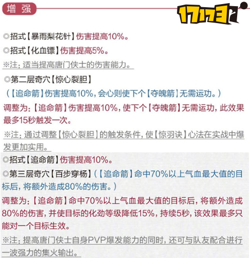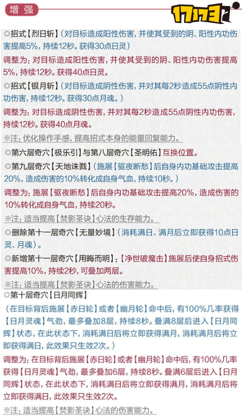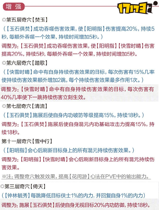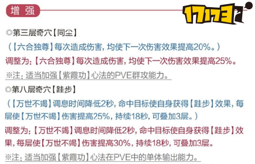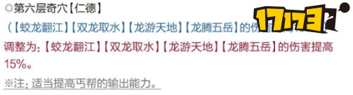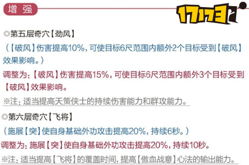 在本次技能改动中,优化了大师的增益buff覆盖时间,以及增加了更多的奇穴选择,相对于之前的二线DPS,有所提升。