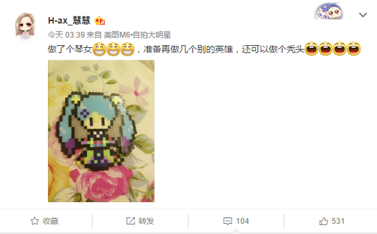 同时,今天早上凌晨三点多慧慧更新了微博,用自己的实际行动攻破了怀孕的传言,说自己做了一个琴女的挂件,准备再做几个别的英雄,还能做一个秃头的!深夜不睡如此修仙,压根就不像一个孕妇应该有的状态,看来慧慧这次是真的没有怀孕。