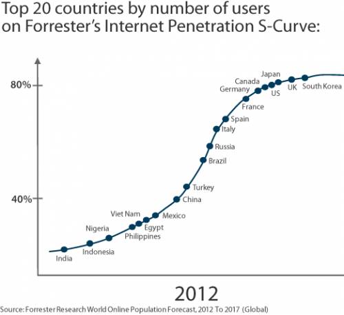 虽说是全球IT产业最为发达的地区之一,但说到网络普及率,拥有广阔疆域和巨大人口基数的印度,恐怕连号都排不上。根据2012年发布的相关调查图表所示,印度以不及中国三分之一的网络普及率排名亚太地区倒数第一(印度12.6%,中国42.3%,吊打…)。当然,增长率同样低得可怜,截止至2016年12月,印度互联网普及率也仅仅达到34%。