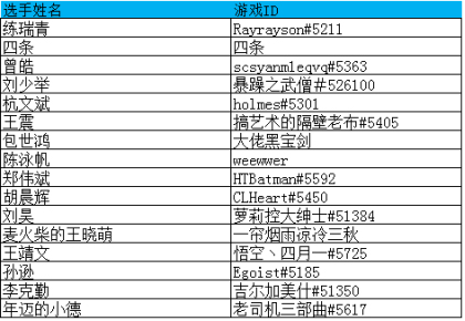 以下是KML2017春季赛最终的16强名单。