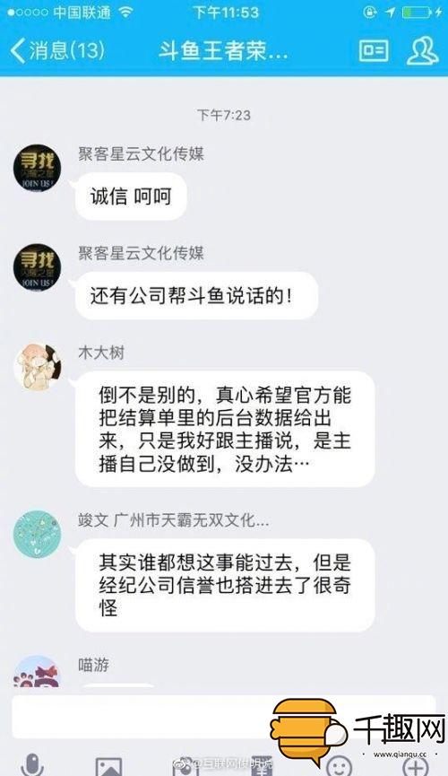 对于此事,有微博用户表示:我几个和斗鱼直接签约的朋友没听说过他们被拖欠过工资,这里面涉及到第三方的经纪公司,具体情况不好评价。