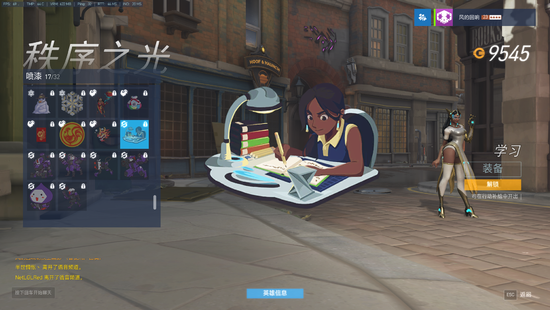 秩序之光的喷漆是她小时候认真学习的样子。我们可能说一句“学霸”了事,但是仔细想想,秩序之光是出身贫民窟的自闭倾向患者,本来已经注定灰暗的命运,是她在建筑学上的才能与执着,带给了她在乌托邦的今日,这其中该是付出了多少汗水呢?即便是现在的秩序之光,也没有懈怠下来,她的新表情里就在研究《绿洲城——新中东建筑学》。费斯卡的秩序成就了她,她相信只要在这个秩序下付出努力,就能让世界更美好,这应该就是暴雪想塑造的秩序之光形象。