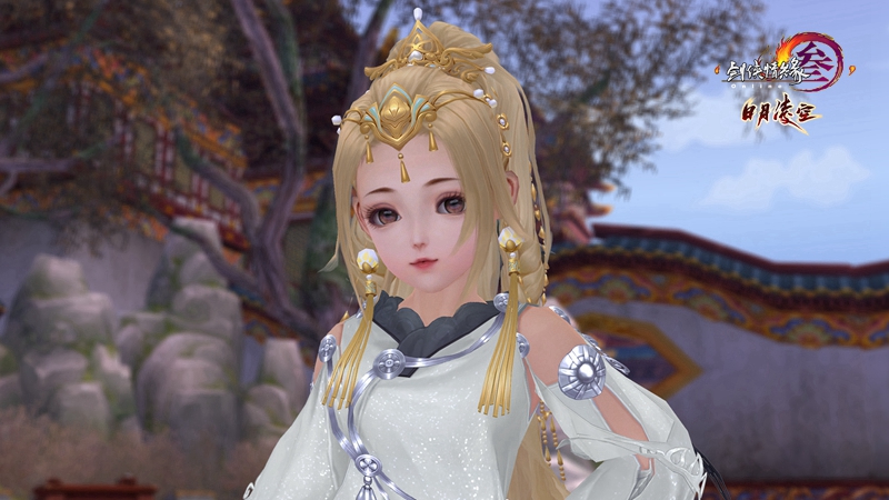 成男发式采用束发高马尾设计,结构精致细节丰富,南珠居于正中光彩夺目;正太发式则采用了全新的比翼双飞金饰装扮,头顶的呆毛加上细长的麻花辫更显顽皮可爱;成女发式则在发量上大胆突破,及腰长发,精致垂髾和各种细节装饰打造出完美女神风范;萝莉发式则采用了大马尾设计,精巧的金冠发型和多个结构精细的金饰更显公主风范。