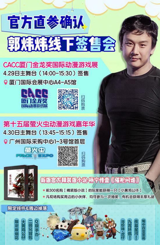 此外,本届校园行结束后,《剑网3》侠客行活动将由厦门CACC及广州萤火虫漫展强势接档,并由制作人郭大侠带来全新官方小说——杨宁传壹《催枪问谁》精装版的现场签售,及多款限量周边的贩售活动。