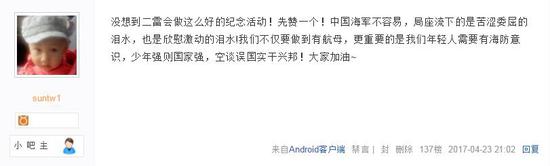 微信留言正因为怀着与局座同样的追求,空中网举办了这次直播活动。相信“局座不哭”这四个字,会伴随直播活动,唤起更多中国人的“蓝海梦想”!海军的成长,需要每一个中国人的关注与支持。