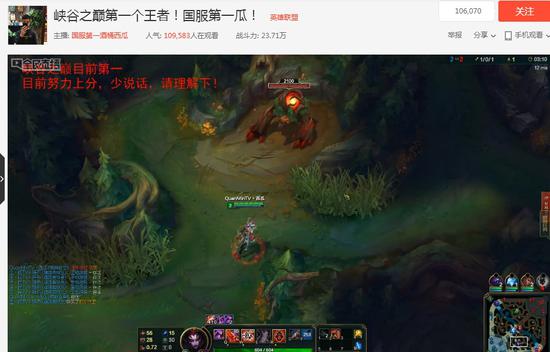 最近LOL开了一个新区峡谷之巅,只提供账号给各区的钻石、大师和王者段位的玩家以及职业选手,可谓聚集了整个国服精英。而开区到现在,才短短几天,全民直播的西瓜就率先登上了王者段位,堪称真正的国服第一!