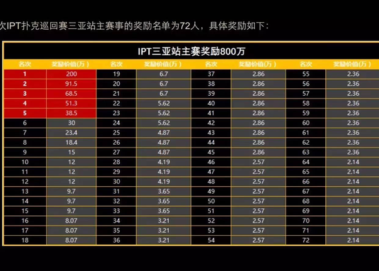 晚上10点半,奖励名单分配公布,前72名选手将共同分享800万的奖励,具体分配如下图: