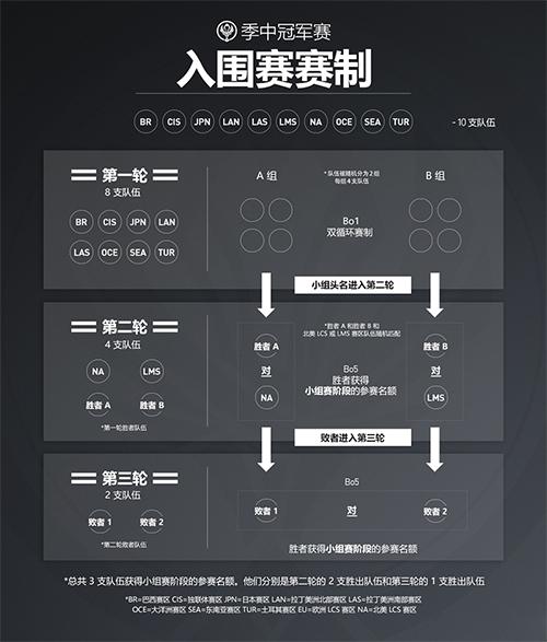 本次季中赛赛程赛制相对反复,在一般的分组小组赛前新增入围赛,各大战队将依照往年战绩进行分配,而作为历年表现最为突出的LCK将不会直接参与到入围赛的角逐中,相反,此次新晋的几大赛区的角逐也将会变得异常激烈了。