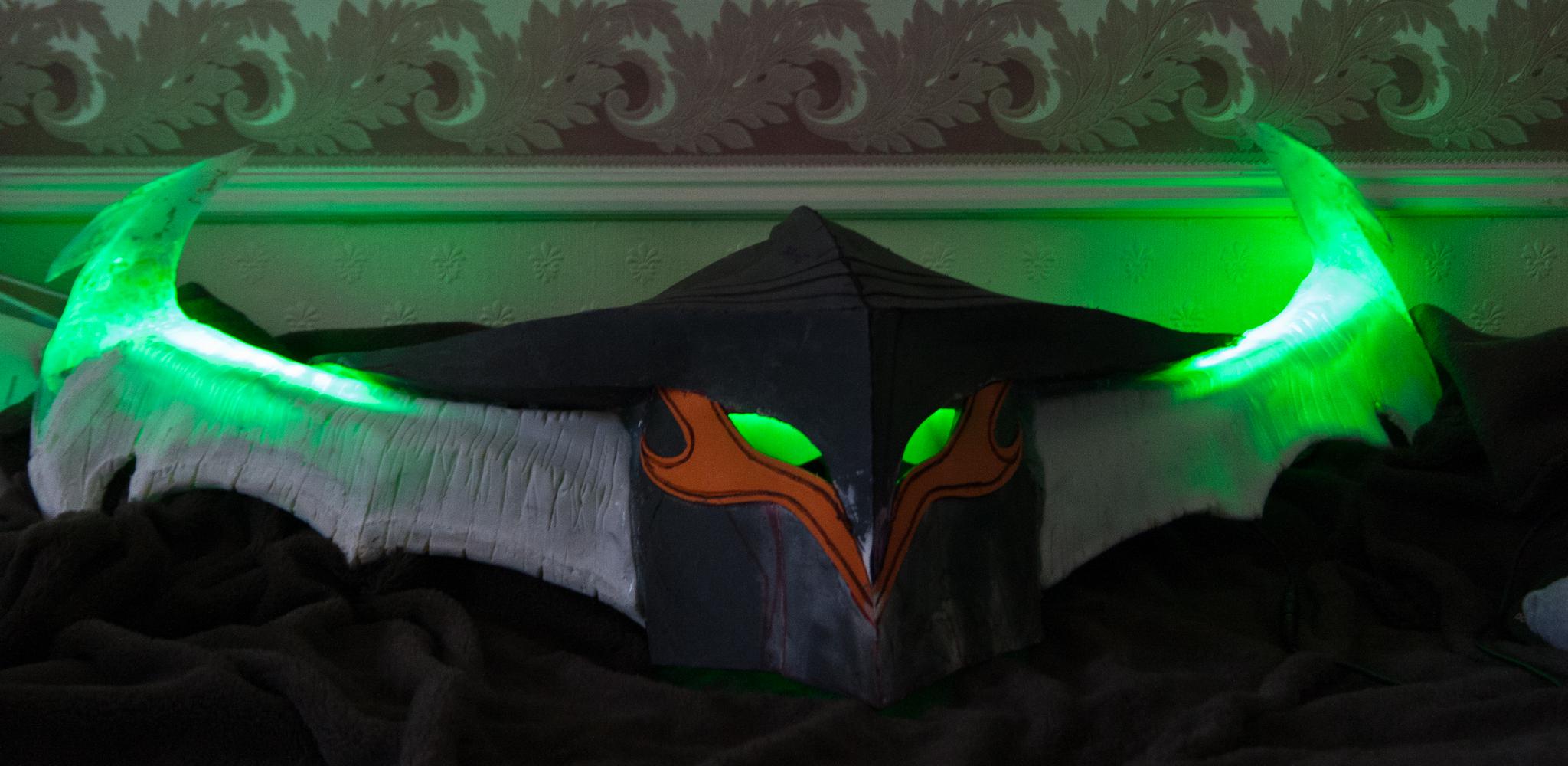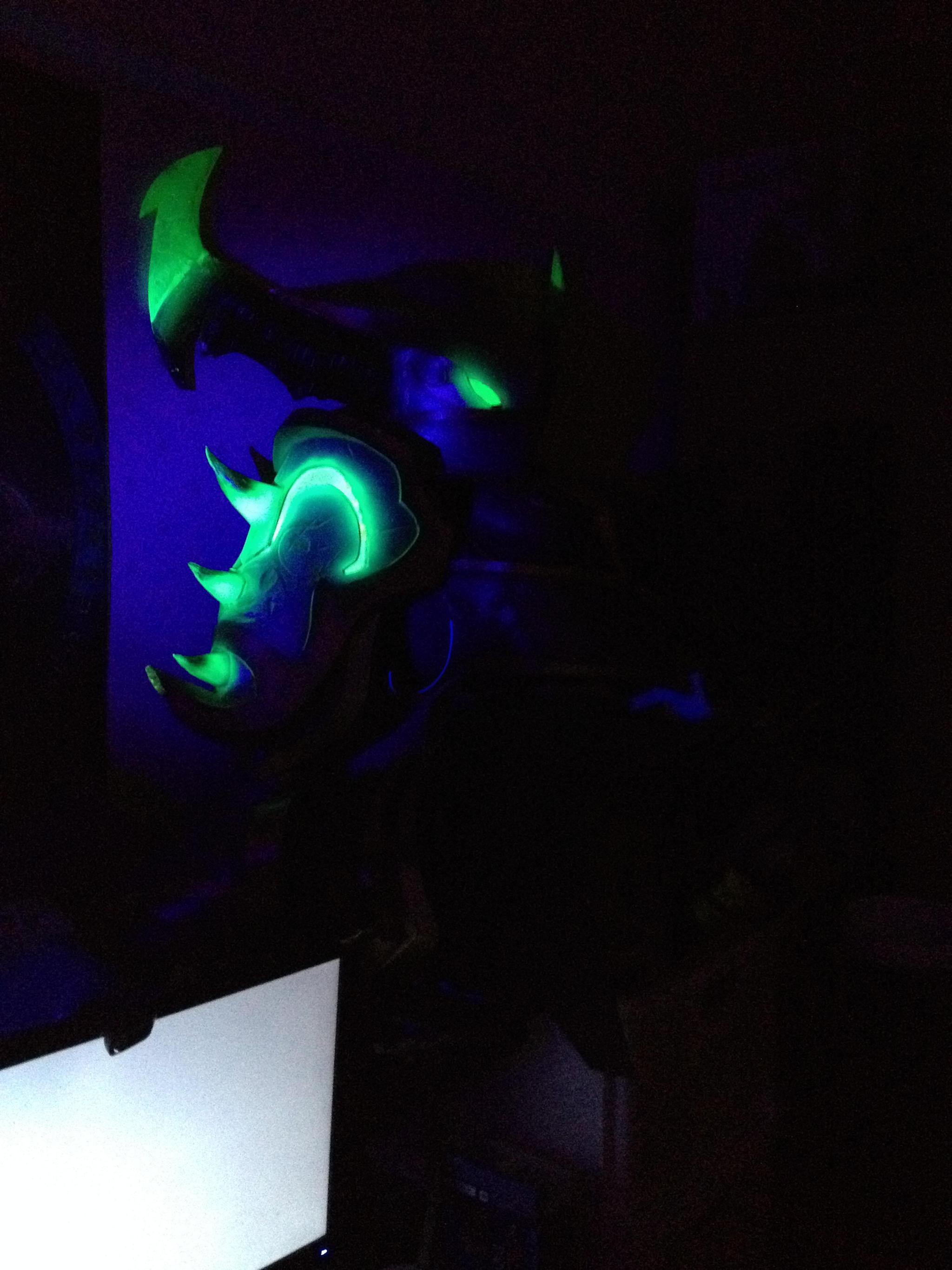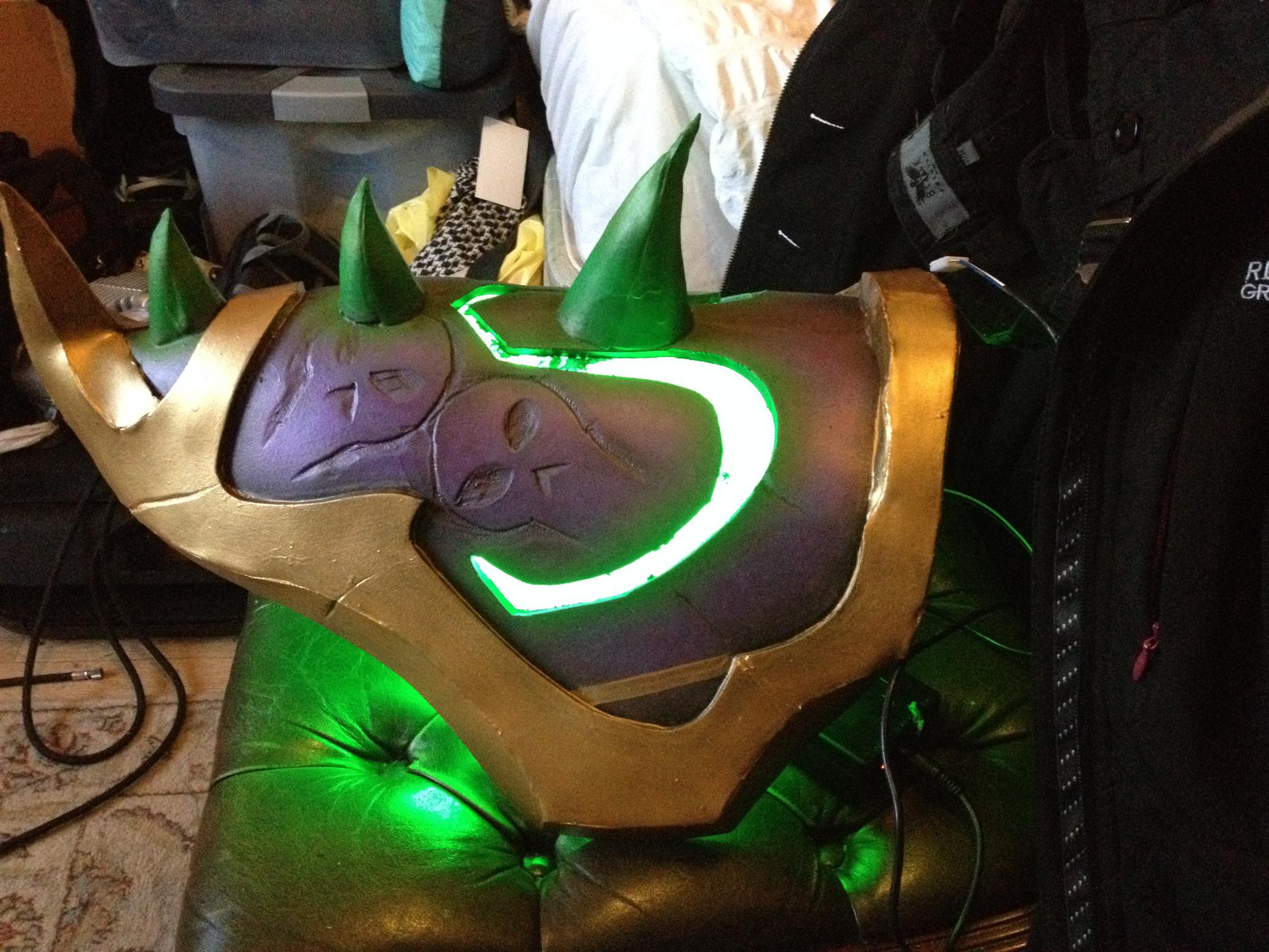 分享以为国外魔兽玩家的科达娜·邪歌COS,该COS采用了大量的LED灯装饰,将吸收了邪能的守望者特效还原了出来。