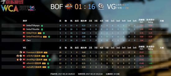 今天最令人期待的就是这两场强强对决了!VG应该是延续了之前打FIVE时的火热手感,开场就以一个7:0打的BOF头晕脑胀。