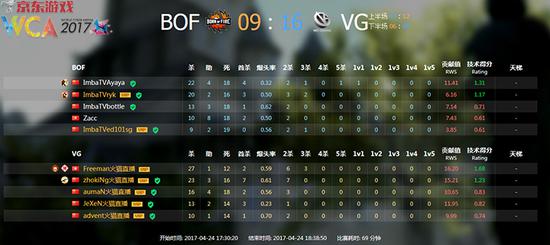 一路被VG的气势压制的BOF终于是在上半场的最后两局拿了两分,但是所有人都知道,CT方上半场得分不过5是多大劣势。