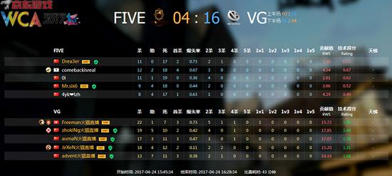 换边之后VG直接T斜坡蹦蹦跳跳地扑了出来,A点瞬间告破,FIVE这边在第14分的时候起了CZ想尝试翻盘,可惜一直掉线的4yk在1V1残局的时候虽然在B小道先手远距离压枪把A包点的JeXen打到残血,但手感火热的JeXen精准的点射也让FIVE挽回赛点的希望破灭了。最后一局也没有任何悬念,而本场比赛完全就是JeXen一个人的表演,30个frag的恐怖数据和2.51的rating似乎在问:“还有谁能跟我抢MVP?”