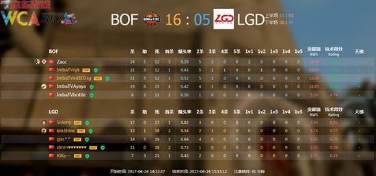 下半场开局BOF一波粗暴的内场RUSH将LGD的防线瞬间击溃。随后BOF仗着枪械优势外场进行摸排,LGD被打的无法还手,接下来的赛点局也没有挣扎,BOF以16:2强势取得第一张地图的胜利。而Ayaya以2.63的rating毫无疑问当选MVP!