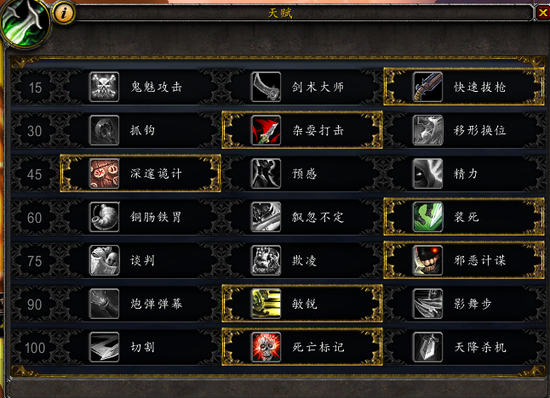 也就是拔枪、杂耍、深邃诡计、假死、邪恶诡计、敏锐、死亡标记,如下图所示。