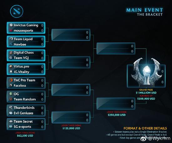 淘汰赛采用BO3单败赛制,决赛为BO5,很不幸中国军团除Random外均被分在上半区,且五支中国队都要对抗外国队,中国军团能否全部挺进下一轮带给我们惊喜?4月27日下午2:00起锁定火猫直播基辅特锦赛专题页:https://www.huomao.com/zt/kievmajor.html?room_number=10661,一起为中国军团加油助威!
