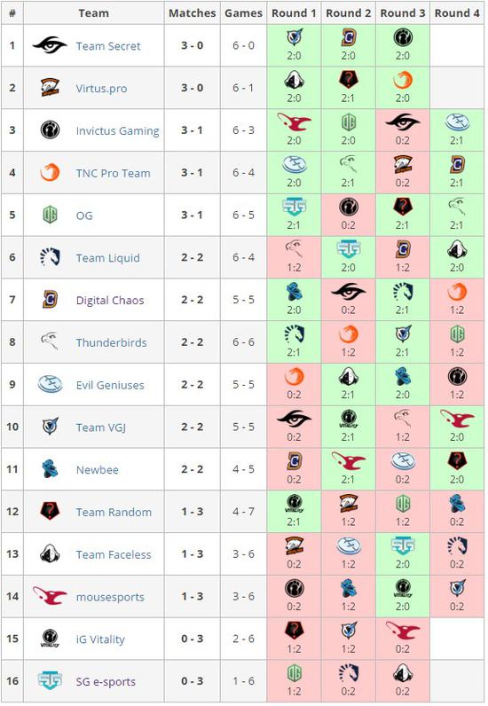 由火猫全程直播的基辅特锦赛于今日凌晨结束了小组赛的争夺,16支战队经过瑞士轮小组赛的激烈角逐,最终IG取得三胜一负,Newbee和VGJ各为两胜两负,Random一胜三负,而IGV三战皆墨排名倒数第二。具体战绩如下: