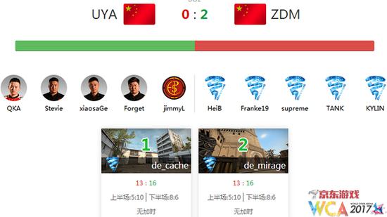 落后5分的UYA孤注一掷起了三把狙击,效果拔群!连拿3分之后,小磊打出自信,起了神器gaygun,杀红眼的QKA更是提着狙打死了有三名进攻队员占领的B包点!面对火力全开的UYA,ZDM依靠Kylin在A点的2次精准的点杀帮助ZDM终于是拿到了赛点,而UYA几次搏命进攻未果以后,经济也无力支撑起他们在赛点起枪,ZDM顶住了压力2:0艰难战胜UYA。