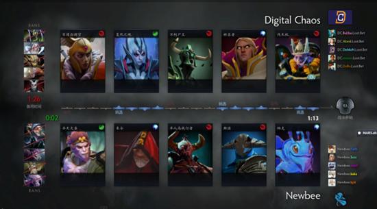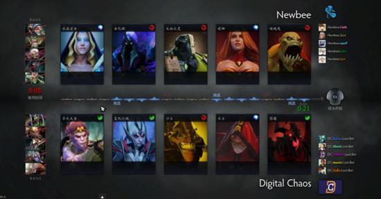 这局比赛中双方前几手BP还是有一种说不出来的僵硬,NB现学现卖拿出了上局DC的大圣术士组合,本以为放出来的大树终于有机会登场,但DC表示并不钟爱,但谨慎的NB还是于第二轮ban选中禁掉了他。也就是从这一步开始双方的bp才变得有意思了许多。不过对比双方来看我更欣赏DC的bp,他们三手选择了近期比赛并不热门,但版本持续加强的尸王,这手尸王来说有两个用途。1.用墓碑去增强DC的团战,并制造战场混乱。2.打乱NB之前的BP思路,迫使他们去选一个打墓碑的远程英雄。反观NB的第四手,他们在DC拥有军团和尸王两个点还是点出了UUU9擅长之一斯文,这个选人着实有些辣眼睛。随后DC分别点出了卡尔和伐木机,这两手选人抑制了NB的阵型战能力,巩固了己方团战,完善了输出强度,也是相当perfect。而NB这边补出了之前EG喜欢的大圣帕克组合。
