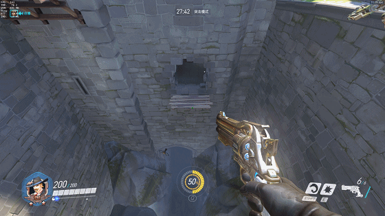 麦克雷利用shift翻滚来跳跃,相比传统的跳跃方式可以略微增加一点点跳跃的距离,大概有1.5米左右