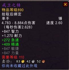 一个890装等的幻化武器戒卫之锤,获取来源应该是萨墓BOSS戒卫少女和黑暗化身中的一个。