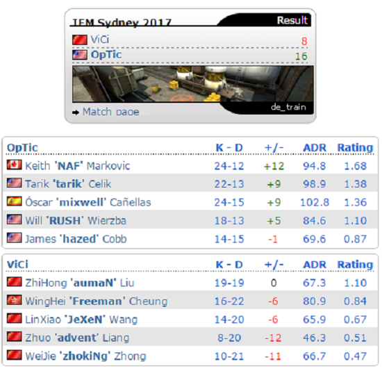 北京时间5月3日,IEM悉尼站Vici Gaming第二轮遇到北美强队OpTic Gaming。最终VG技不如人,8-16输给对手,濒临淘汰。