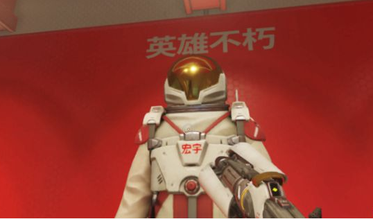 生前,吴宏宇曾在社交平台表示很期待《守望先锋》,其朋友圈的最后一条状态便与这款游戏有关(上图)。为了纪念他见义勇为的行为,暴雪便在游戏中的“漓江塔”地图里为宏宇立像——即上图的宇航员,胸口处写着两个汉字“宏宇”,脚下有一圈白花,而背后的红墙上,“英雄不朽”四个大字非常醒目。