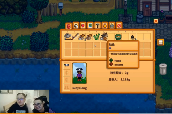 这款游戏其实很简单,就是通过耕种、采矿、采集、捕鱼和战斗来提升熟练度,做出更好的东西来换取更多的金钱,有了金钱就可以建设自己的农场,其中最难的就是钓鱼,需要敏锐的观察力和超快的反应能力,很多观众都叫苦说自己钓不上来,技能等级只有3级的笑笑决定亲自挑战一下5级才能挑战的鲶鱼,凭借着自己超快的手速和反应成功钓到了手。