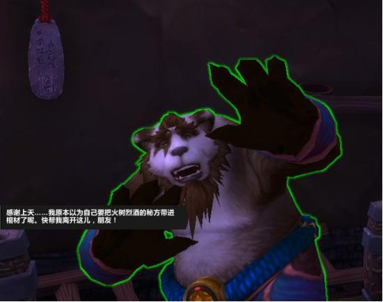 话说大兄弟呀这都啥时候了,保命要紧啊!怎么还想着扛上两桶沉重的烈酒呢?哎。。。可真是没办法!谁叫咱受托于妹子钟思亚呢!生还者们提出的要求就尽力满足吧!不过在潘达利亚游历这么久,还是第一次听说火树烈酒这种稀有的酒品,带上两桶原浆也算是对熊猫人酿酒文化的保护吧。