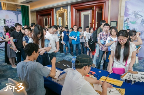 与以往不同的是,本次玩家见面会旨在为玩家打造一场立体的国风音乐之旅,在现场精心布置了古筝区、古扇区等多种有着古典韵味的趣味体验区域,配合现场时刻萦绕着的国风旋律,玩家们一来到现场便沉浸于音乐的海洋之中,玩的不亦乐乎!