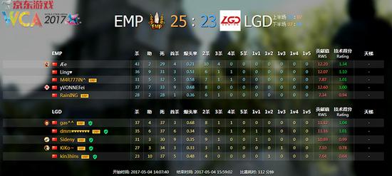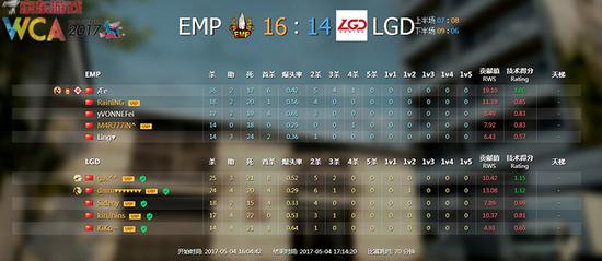 加时赛阶段LGD重兵防守B区,成功守下第一分后EMP三人摸排A小道,配合跳台瞬闪清点,A区瞬间沦陷,EMP抢回一分,下半局EMP采取B区两两联防的站位成功防住LGD两波进攻,双方再次打平。第二个加时两队狙击手都打出了很强的压迫性,而Sideny把狙击枪丢给了dmm取得了很好的效果,双方仍然战平。第三个加时EMP再次依靠AE单B狙击枪双杀,回防配合出色取得两个赛点,这次LGD再也无力回天,EMP苦战三个加时战胜LGD。