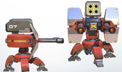 在《守望先锋》中,尽管托比昂的铆钉枪伤害高达70 ,但他主要伤害手段还是通过自己放置的可自动瞄准的炮台来进行实现。一级炮台的血量为150,秒伤28点,对于大多数英雄来说基本造成不了太多障碍,但此时如果按“2”键将托比昂的武器切换为小铁锤,对放置的一级炮台进行敲击,则可将炮塔升级。二级炮台的血量为300,秒伤56,对于猎空和源氏这样的脆皮英雄可造成极大威胁。而在托比昂释放大招“Q”技能时,二级炮台还能短暂的升级为血量800,秒伤126的三级炮台,足以对任何敌人造成成吨的伤害。