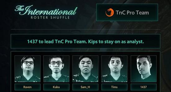 在震中杯2017出局之后,TNC电子竞技俱乐部表示DOTA2分部存在内部问题需要调整,数日之后俱乐部公布了新的阵容名单,而此1437将会成为队伍的新队长带领手足征战TI7国际邀请赛。