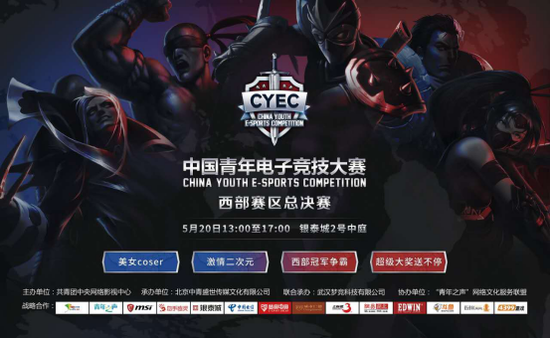 2017年05月20日,中国青年电子竞技大赛(以下简称CYEC)西部赛区总决赛即将打响。本次大赛是由共青团中央网络影视中心主办,北京中青盛世传媒文化有限公司承办、武汉梦竞科技有限公司联合承办、“青年之声”网络文化服务联盟协办的全国性电子竞技赛事。