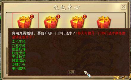 诸位玩家每次完成转生之后,可前往在礼包中心领取1个转生礼包,持续9天,每天登录游戏后,可使用礼包提升一项师门法术的熟练度至转生前水平,若熟练度超额,则将以一定比例返还。