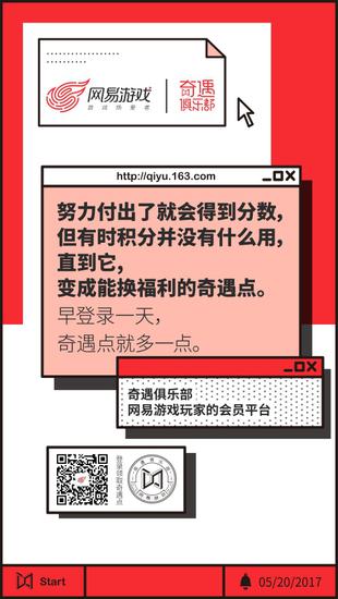 导语:网易游戏玩家会员平台:奇遇俱乐部将于5月20日14:00正式开启公测。只要你玩过任意一款网易游戏,即可登录会员平台,用投入游戏的时间与钱换取福利,开启奇遇之旅。