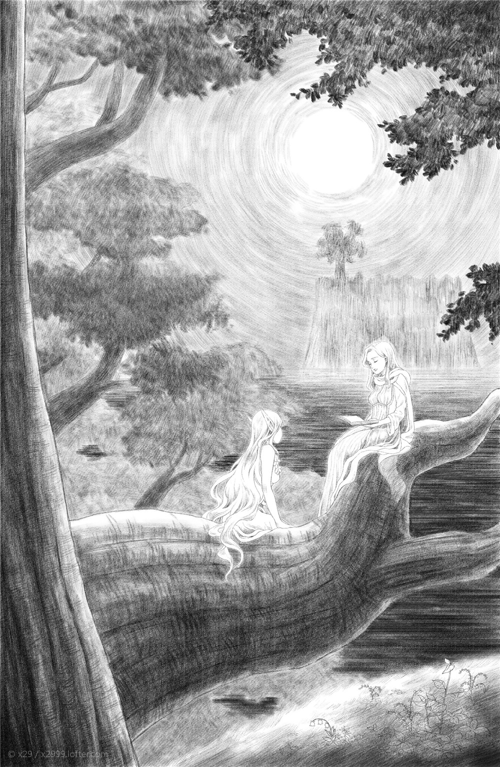 最后一张是画给两个游戏角色的.。.结局吧!其实第三张就可以当作结局啦…可以想象后来德鲁伊和法师一起去了很多地方冒险,一起去跳了每一棵世界树,一起去看了很多地方的月光…可是不会有了,他已经AFK很久了,而我再也没有登录过暗夜精灵德鲁伊这个角色。
