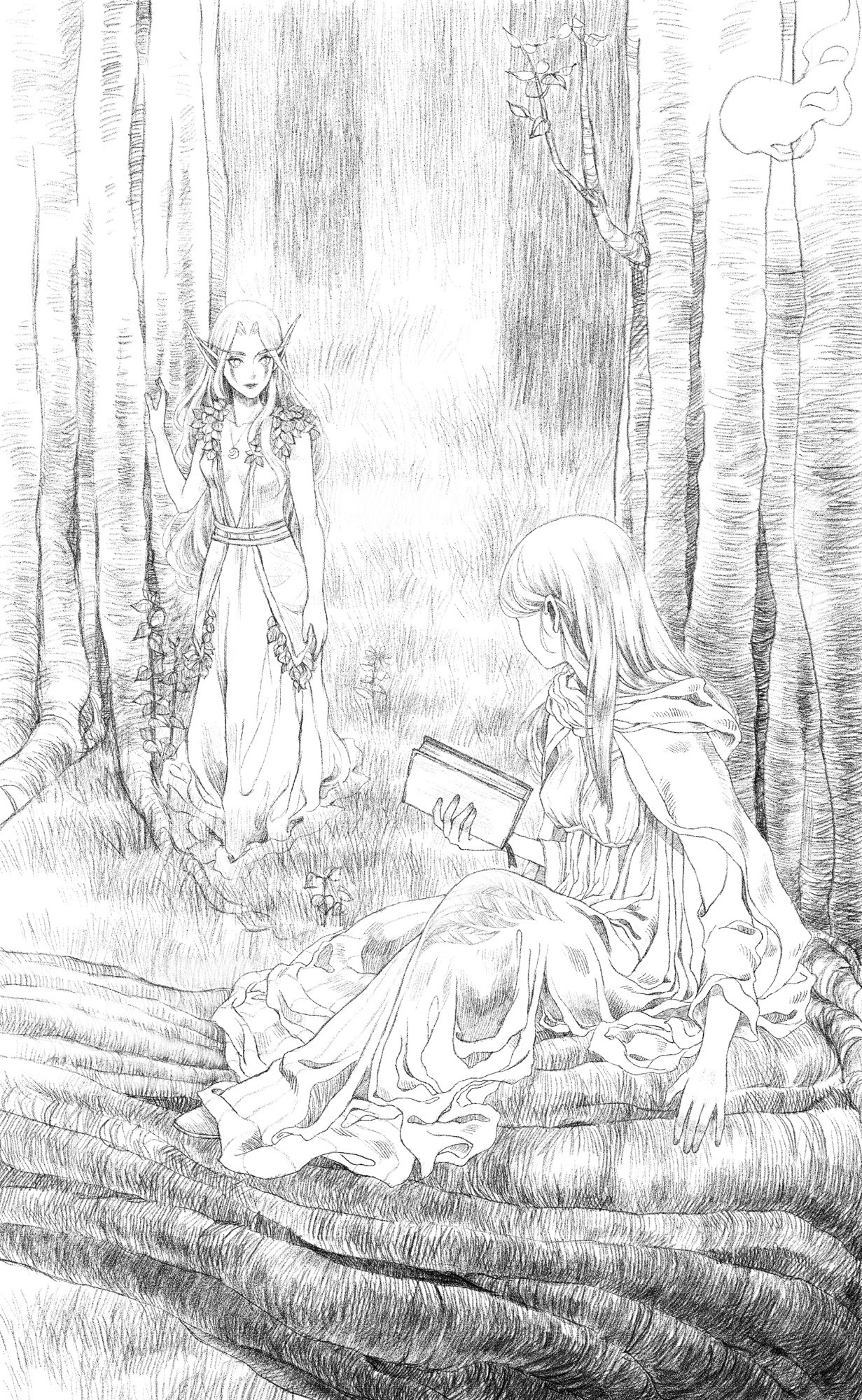 后来,法师离开了泰达希尔,去很远的地方继续学习魔法知识了,不过,她时常会寄信给德鲁伊,信中有她最新撰写的小故事,而德鲁伊没有跟法师去探索树下的世界,仍然留在这棵夏季永恒的大地之冠上,每天看着相同的银色月光和紫罗兰色的夜空,读着法师写的信。