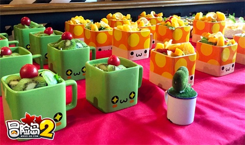 此外,冒险纪念趴还为岛民们准备了冒险岛2主题茶点,萌点十足的花蘑菇或绿水灵马克杯里装满了水果沙拉,还有三明治、小蛋糕等各种点心饮料,让岛民们垂涎欲滴呢!