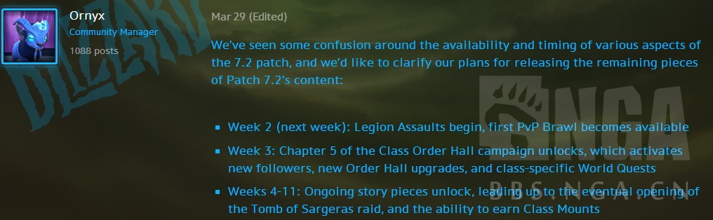 而这两周对应的主线战役任务,也就是“!捍卫我们的事业”以及“!击垮军团”,这两个任务目前数据库和游戏中都没有对应的内容。也就是说,他们是下个补丁的内容,即7.2.5。