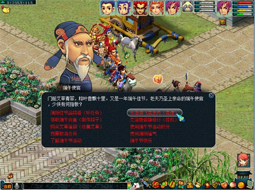 在端午使官处领取“端阳佳节品粽香”任务,在四十分钟内完成任务即可获得经验、金钱等奖励。还有机会获得粽子原材料,制成粽子后无论自己享用还是馈赠好友都是极好的选择。每天前80轮还可获得双倍奖励哟。