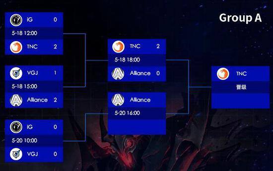 而最终两只国外战队在胜者组决赛相遇,经过两局的比赛,TNC稳稳拿下Alliance,夺得了A组首个出线名额。