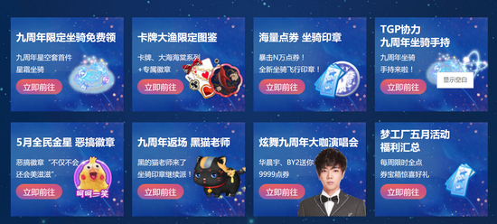 从官网的信息可以看出,这次炫舞九周年活动内容非常具有吸引力!除了林宥嘉以外还有不少明星倾力助阵,海量的活动与大量限定非卖福利都会在活动庆典中回馈给所有支持炫舞的玩家,游戏也将全新推出5月周年庆版本“只因遇见你”,千万不要错过哦!
