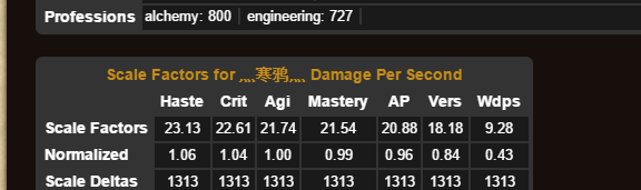 我使用自身模板进行模拟,都是相同装等,饰品都是900带槽或者905。得出的三围权重包括敏捷,数值都是非常相近的,可以说是相差无几。硬要分出高下的话,就是精通、暴击、敏捷。