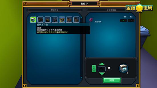 在新手任务阶段,我们需要在自己创建的房子中建造一台“分解工作台”,虽说属于基础设施,但它在《宝藏世界》里的地位非常重要,会伴随我们游戏始终。分解工作台可以将我们不需要的装备和物品进行分解,从而产生升级装备材料以及物品制作材料。