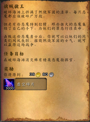 本周将是魔兽7.2版本开放的第八周,7.2的主线任务突袭墓穴会进一步开放,本周需要玩家消灭三只破碎海滩的精英怪,奖励3000个虚空碎片。提醒一下,这个任务已经是倒数第三个突袭墓穴的任务了,这意味着萨格拉斯之墓即将开放。
