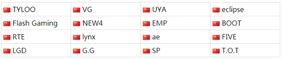ESL One科隆中国区预选赛正赛参赛队伍如下: