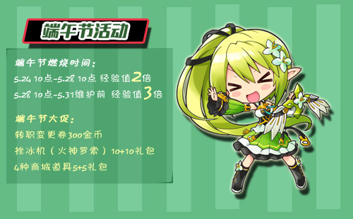 活动内容:1、5/24 10:00-5/28 10:00 经验值2倍;5/28 10:00-5/31维护前 经验值3倍。