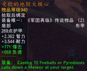 在有爆发的地狱火核心时,下一个火球或炎爆会同时触发一次流星,其效果和天赋技能相同。