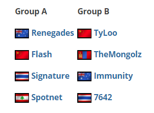 比赛分组TyLoo和Renegades作为主办方受邀战队被分在了不同的小组。小组赛制为经典GSL赛制。