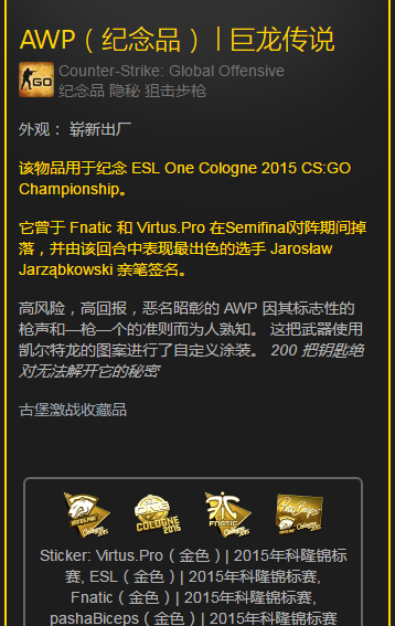 镜头签名纪念版AWP巨龙传说 崭新出厂